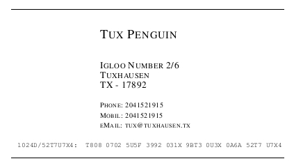 Hier nochmals das Ergebnis einer einzelnen Visitenkarte in Groß.